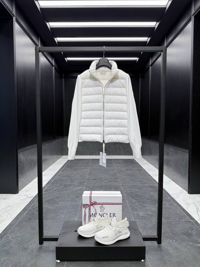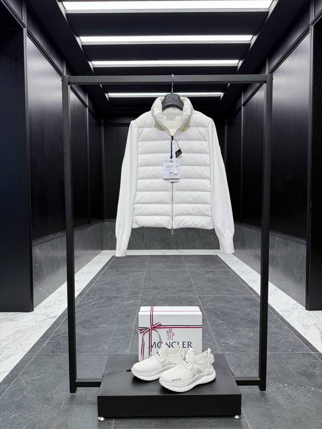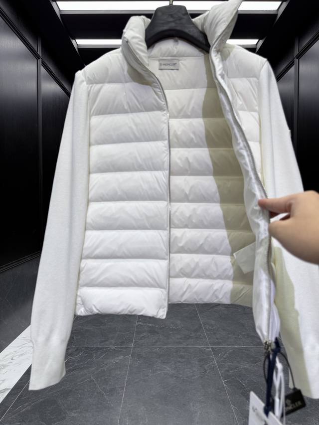 Premium Down Moncler Cardigan Women's Lightweight Padded Wool Down Cardigan. Many customers have requested fuller down filling, which we have achieved. Many customers have wanted the label to be more attractive and neat, which we have also fulfilled. DDD comes standard with a complete set of counter gift box packaging. Unlike low-end, misprinted packaging found on the market. The hangtag barcode and style number match the official website. The hangtag has a built-in NFC electronic anti-counterfeiting sensor and supports multiple anti-counterfeiting verifications. DDD This women's wool cardigan is filled with down and suitable for all seasons. DDD This cardigan is a classic Moncler design, which can be worn alone in pleasant weather or layered with jackets and coats when it gets cooler. The wool knit style with down filling on the front provides warmth and protection. DDD Details DDD Made of fine wool and Nylon L