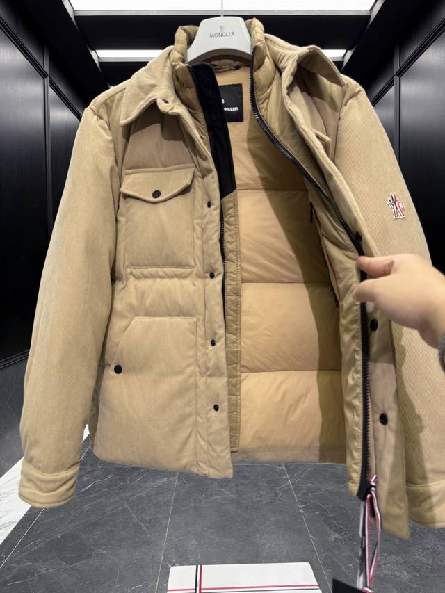Premium down Moncler Grenoble ski collection Lech corduroy two-piece shirt-style down jacket. Filled with goose down. Original replacement fabric. Complete barcode and style numbers, consistent with the official website. Hang tag with built-in NFC anti-counterfeiting and multiple security verifications.