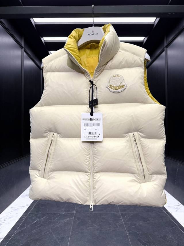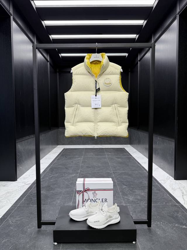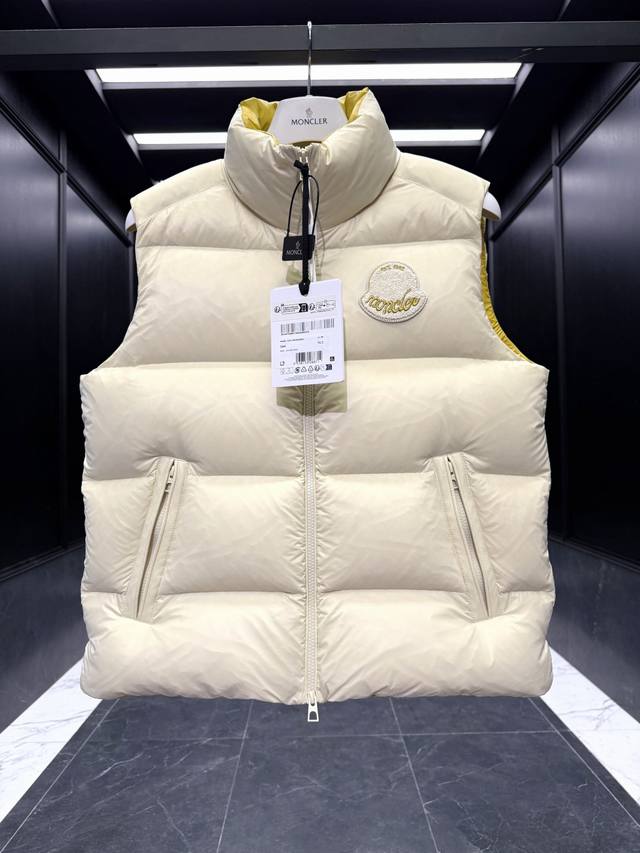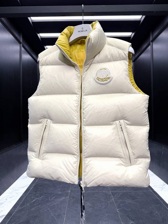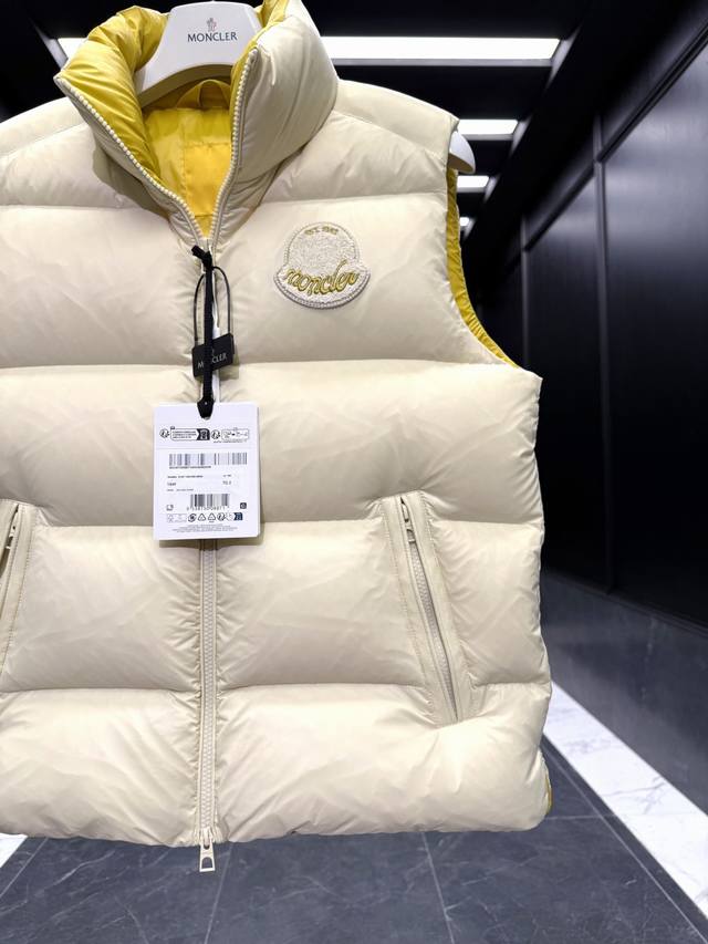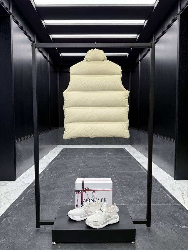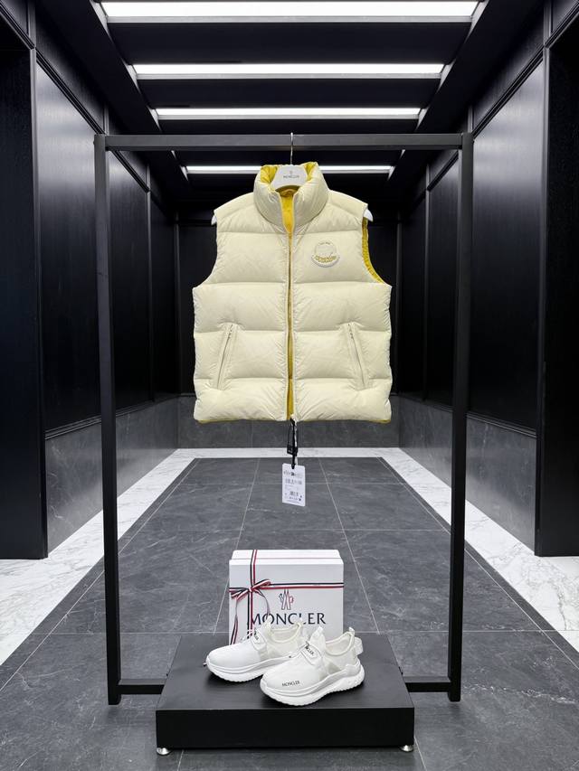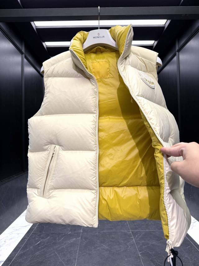 Premium Down Moncler Lipsi Down Vest, Premium Goose Down Version. Color-blocked design. Super full filling. Developed from the original source, distinguishing it from all low-end versions copied from pictures online. Features original premium goose down filling, original replacement fabric, and original hardware. Complete hangtag, barcode, and style number, matching the official website. Hangtag has built-in NFC electronic anti-counterfeiting feature, supporting multiple anti-counterfeiting verifications. Comes with a complete set of counter gift box packaging: original airplane box, original shopping bag, original dustproof bag, original hanger, original thank-you card, original ribbon, and upgraded original extra-large magnetic gift box. The Lipsi men's down vest is made of glossy Nylon Laqu