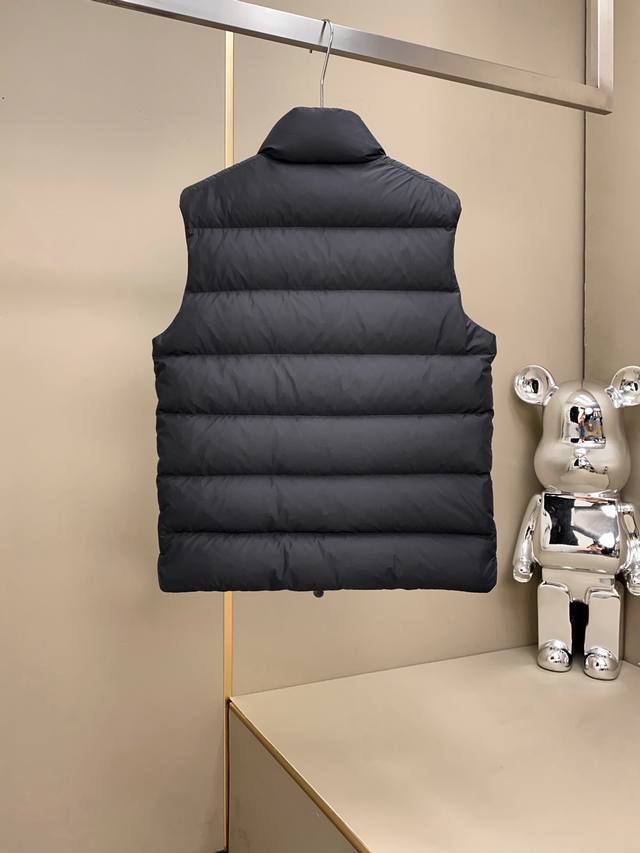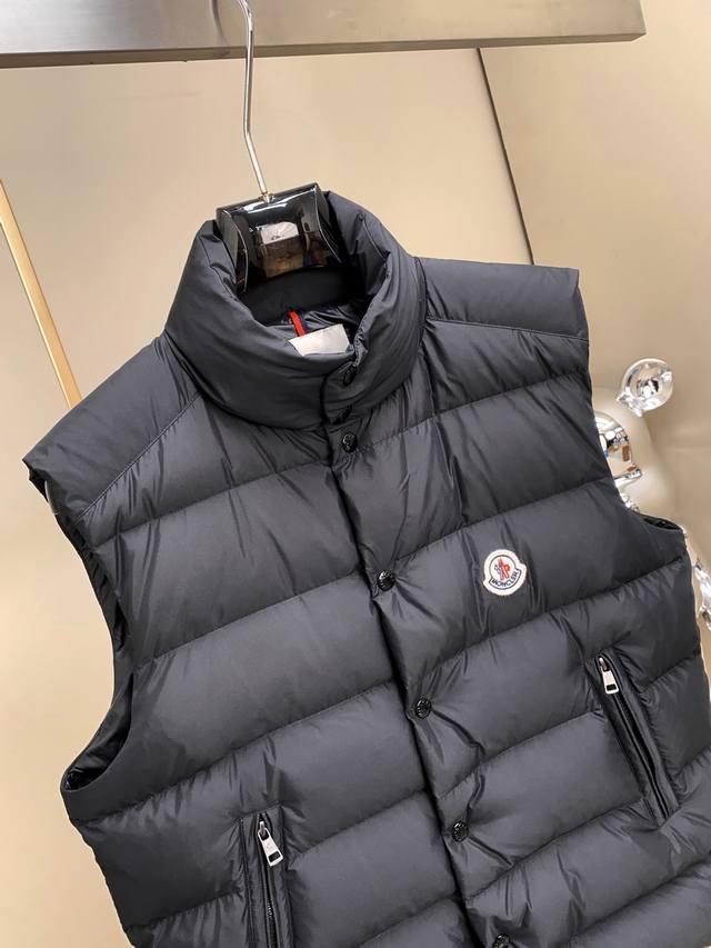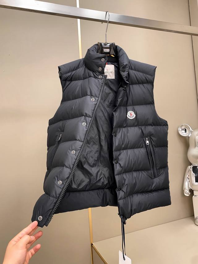 The Tibb men's down vest is a classic Moncler piece, inspired by iconic 80s silhouettes. Made from Longue Saison fabric, it's perfect for transitional seasons. This nylon fabric is lightweight and protective. Ddd Details: Made with Longue Saison fabric, lined with Longue Saison lining, filled with down, features a snap-button collar, zip closure, and zip pockets. Unisex. Color: Black. Size Chart (25001): 1-5 Size 1: Shoulder 46cm - Chest 116cm - Length 65cm Size 2: Shoulder 48cm - Chest 118cm - Length 67cm Size 3 : Shoulder 50cm - Chest 120cm - Length 69cm Size 4: Shoulder 52cm - Chest 122cm - Length 71cm Size 5: Shoulder 54cm - Chest 124cm - Length 73cm