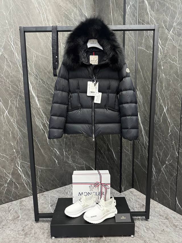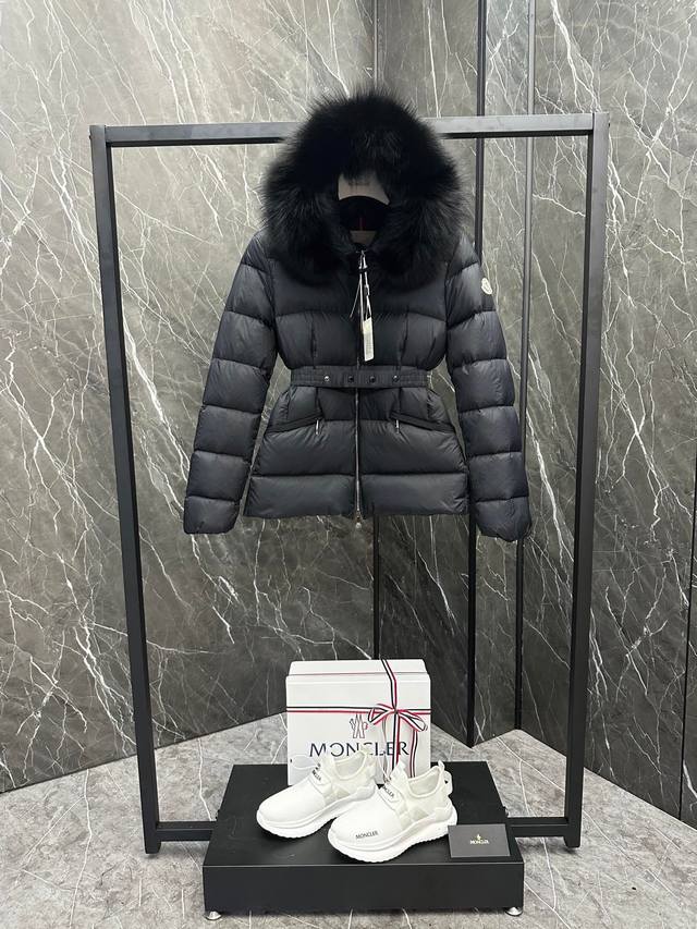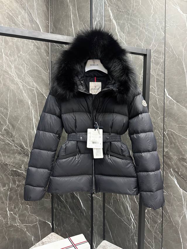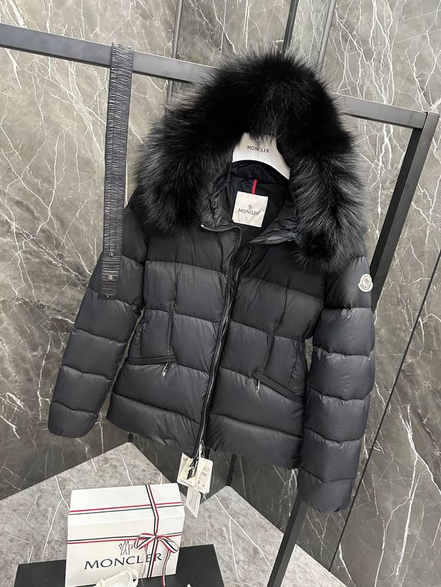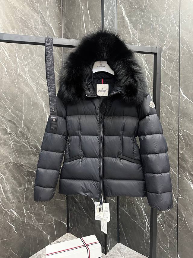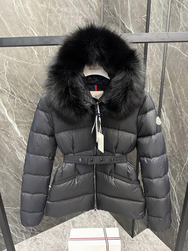 Top-tier Moncler export brand new colorway Boed women's short down jacket. Made from Longue Saison fabric with fur trim, this down jacket offers exceptional warmth. Features a large, imported Finnish fox fur collar. The Boed down jacket boasts a soft silhouette and a beautiful belt for a sophisticated winter look. Made from Longue Saison fabric, the hood is trimmed with wool. Details: Made from Longue Saison fabric; Longue Saison lining; Down filling; Hood with detachable wool trim; Two-way zip closure; Elastic waistband with lacquered snap buttons; Zippered horizontal pockets with grosgrain piping; Adjustable elastic cuffs; Size: 1-4; Women's only.