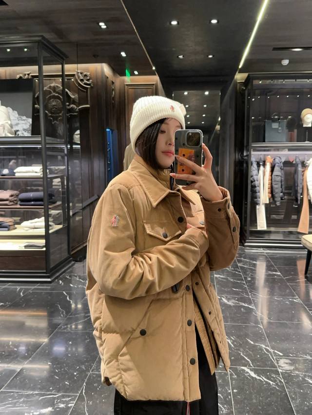 Upper body effect | Moncler Grenoble ski series Lech corduroy fake two-piece shirt-style down jacket. Looks good on both men and women.