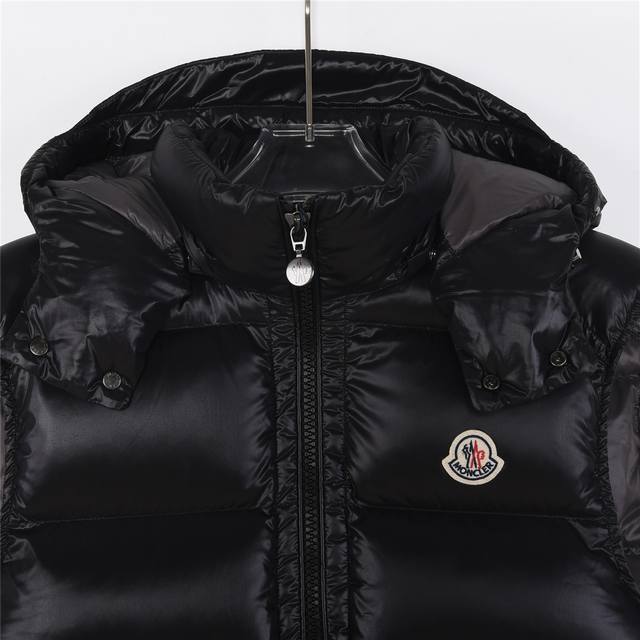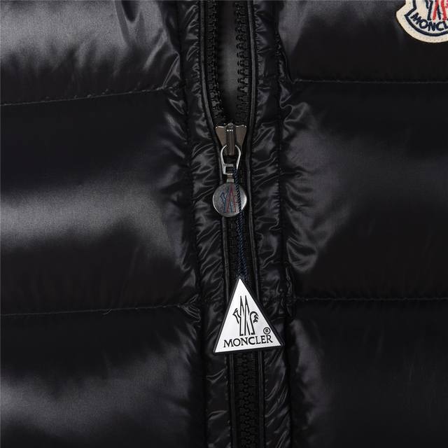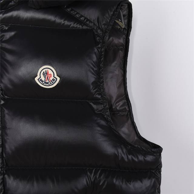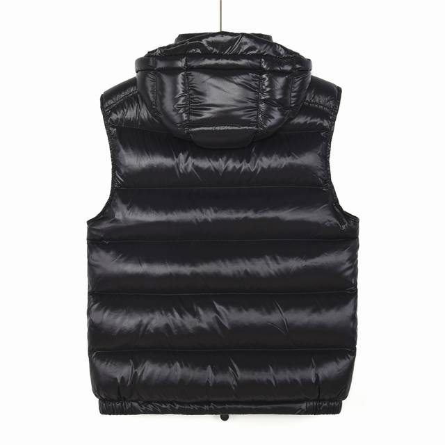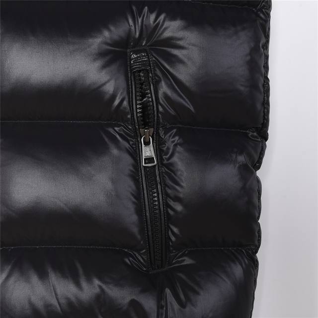 Bormes down vest is made of iconic shiny patent nylon, with classic rectangular quilting that makes it stand out. The patent nylon lining is filled with 95% white duck down, providing excellent protection and warmth. It features a two-way zip placket with a Moncler logo-style pull tab, a detachable hood with snaps and an elastic drawstring, a snap-button collar, zip pockets, an NFC anti-counterfeiting chip, and all original factory-customized hardware accessories, ensuring the highest quality replica on the market.