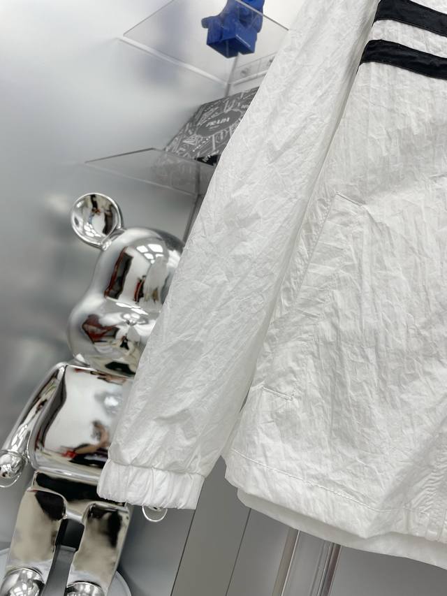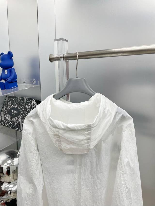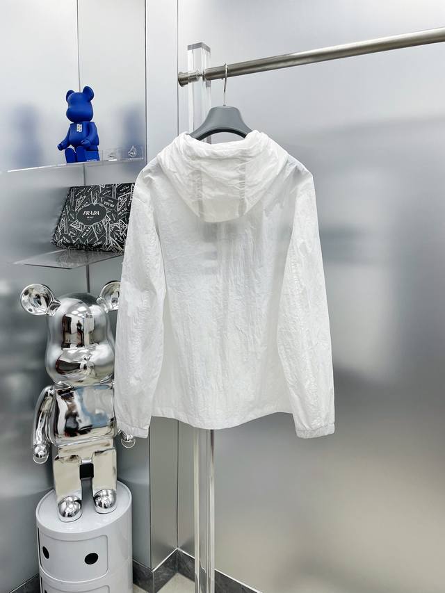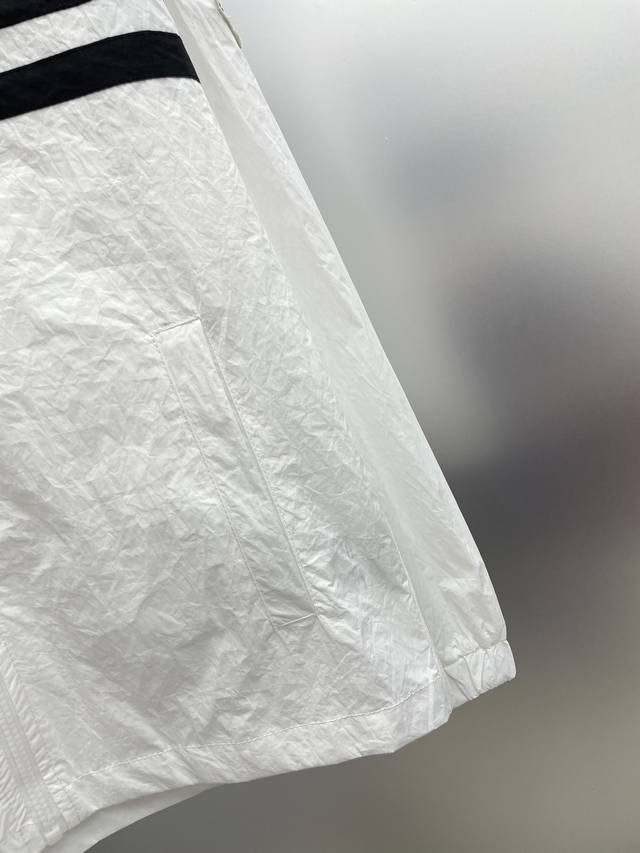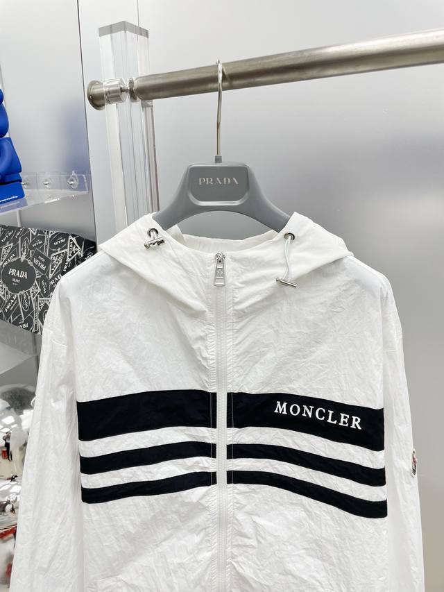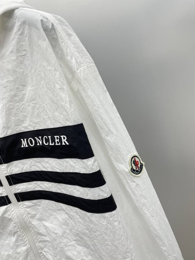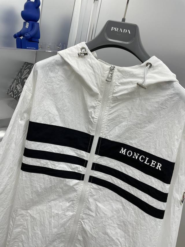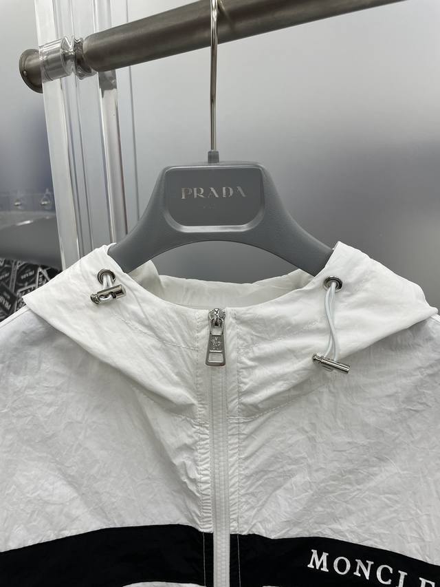 A complete Moncler 2025 Summer New Black and White Color Block Letter Print Logo Sun Protection Set (without disassembly). The set includes shorts and a hooded jacket. Made with imported lightweight nylon technical fabric, the 3D print is soft, comfortable, and super lightweight! The style is fashionable and stylish, with all hardware custom-supplied, and the zipper engraved with the brand logo. Details highlight the quality! Perfect for spring and autumn as an outer layer, or for everyday styling. Also great as a summer sun protection layer in air-conditioned rooms