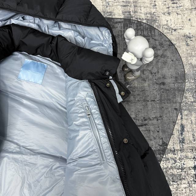 Cyclone down jacket reinterprets the classic 80s silhouette with a modern twist, featuring a refreshed minimalist design. This short down jacket is made of nylon fabric, and the sleeves are easily detachable, allowing the jacket to be worn as a vest. A detachable hood and contrasting lining add a finishing touch to the design. Details: Made of nylon fabric with a Nylon Laqu