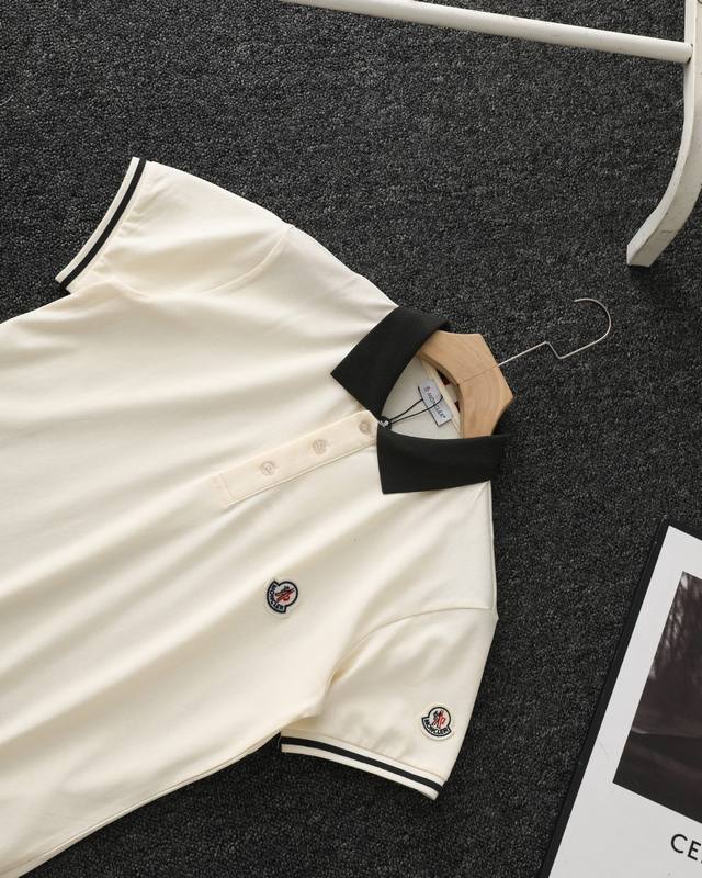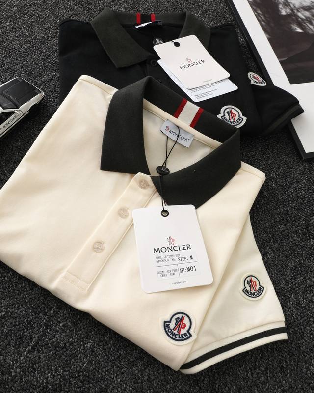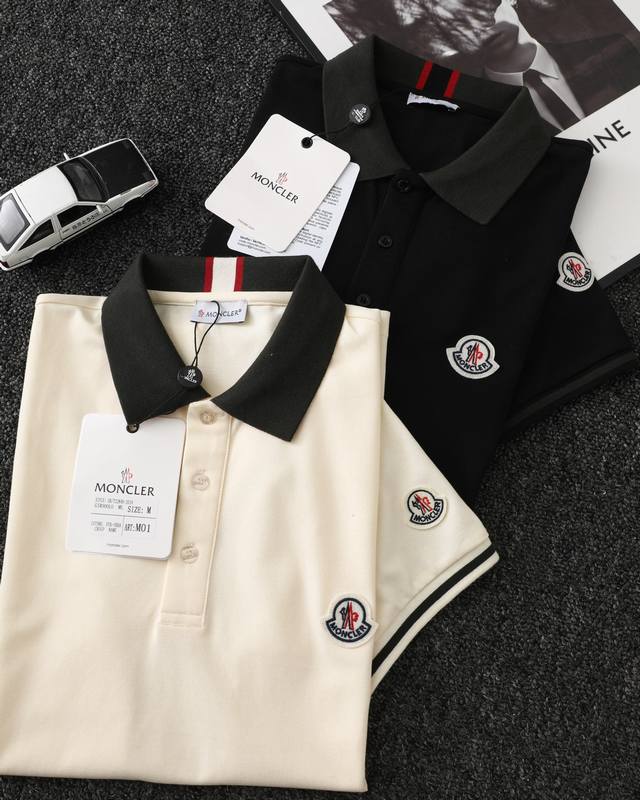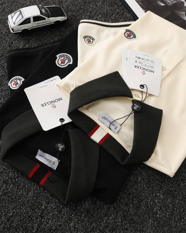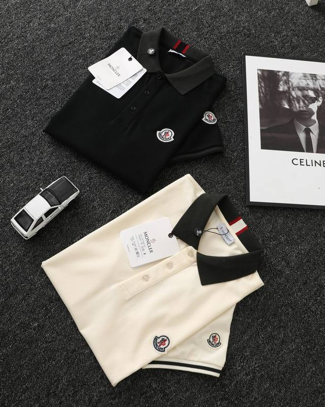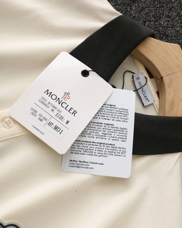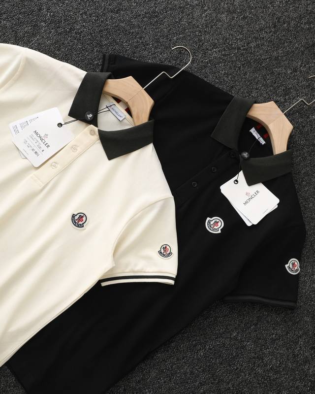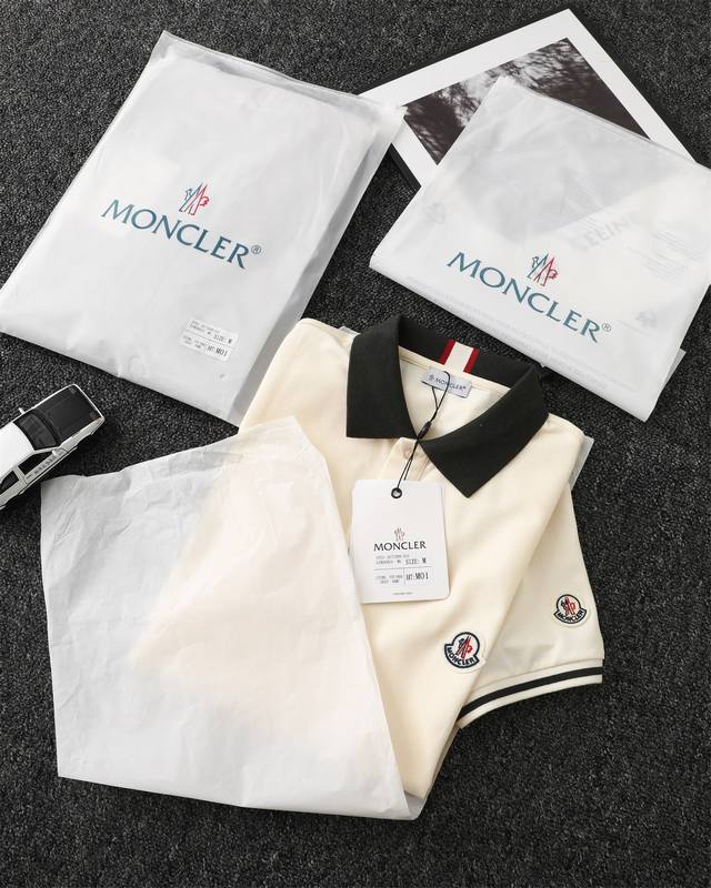 Moncler official website synchronized new collar ribbon logo lapel Polo shirt