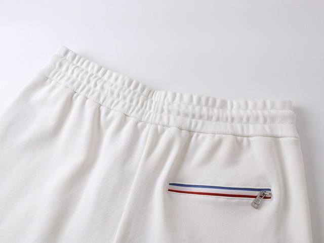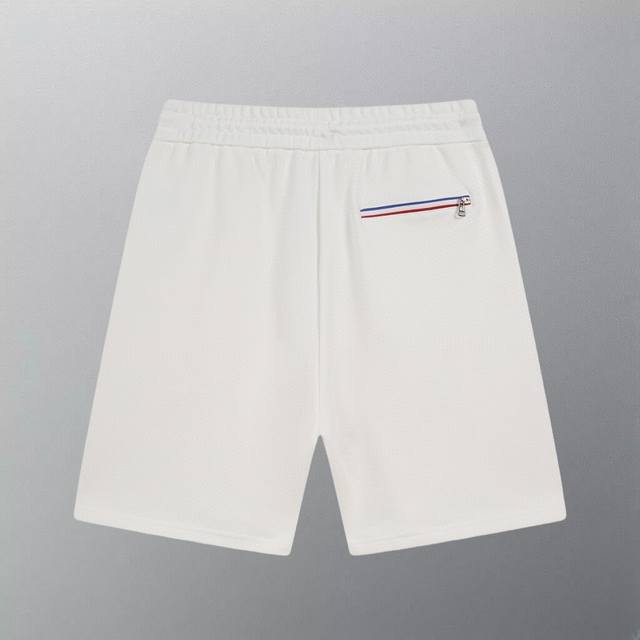High-quality Moncler classic small-label shorts. Made with 360g custom pure cotton fabric, featuring an embroidered logo, custom hardware zippers, a tight and three-dimensional fit, vertical stripe stitching, and custom drawstring hardware that is high-quality, smooth, comfortable, and breathable. The embossed design adds a stylish and casual touch. Colors: Black, White. Sizes: XS-L.