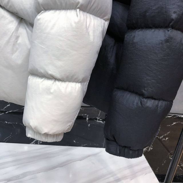 Moncler New Color Block Print Logo Down Jacket. Classic black and white, unisex,