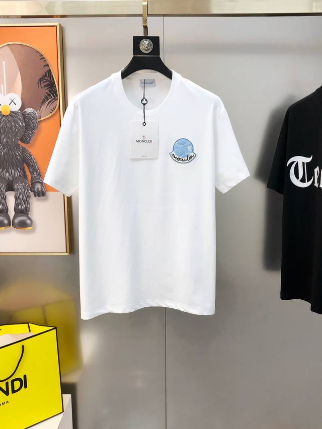 M*Ncler Moncler 2025 early spring new original men's round neck short-sleeved T-shirt counter simultaneous sale high-end quality high version Os version wide version popular chest embroidered logo cloth label design custom imported double-strand 100% cotton fabric soft and delicate to the touch skin-friendly and comfortable to wear OEM factory P fine workmanship very handsome and stylish men's must-have item three complete sizes: S-5Xl maximum size can wear about 220 pounds please report height and weight when placing an order black white