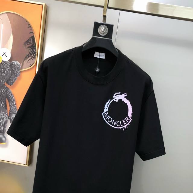 M*Ncler Moncler 2025 spring and summer new original men's round neck short-sleeved T-shirt counter simultaneous sale high-end quality high version Os version wide version popular chest printing rubber printing letter logo pattern design custom imported double-strand 100% cotton fabric soft and delicate to the touch skin-friendly and comfortable to wear OEM factory P fine workmanship very handsome and stylish men's must-have item three complete sizes: S-3Xl slightly larger maximum size can wear about 220 pounds please report height and weight when placing an order black white