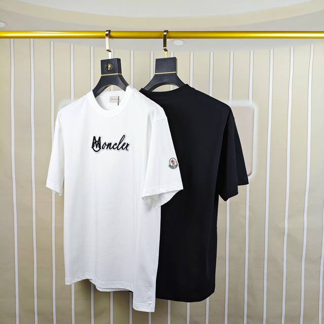 M*Ncler Moncler 2025 spring and summer new original men's round neck short-sleeved T-shirt counter simultaneous sale high-end quality high version Os version wide version popular chest embroidered letter logo sleeve embroidered cloth label design custom imported double-strand 100% cotton fabric soft and delicate to the touch skin-friendly and comfortable to wear OEM factory P fine workmanship very handsome and stylish men's must-have items three complete sizes: S-3Xl slightly larger maximum size can wear about 220 pounds please report height and weight when placing an order will be shipped the next day black and white