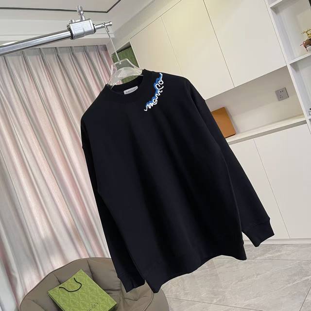 Moncle* Moncle 2025 Autumn/Winter New Style Personalized Logo Print Custom Fabric 400G Crew Neck Sweatshirt Unisex Sizes: S, M, L, XL, XXL (five sizes available) Colors: Black, White