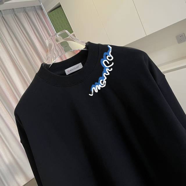 Moncler 25Fw round neck sweatshirt with lettering . 480G high-grade combed cott