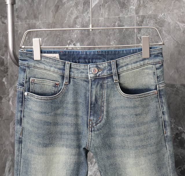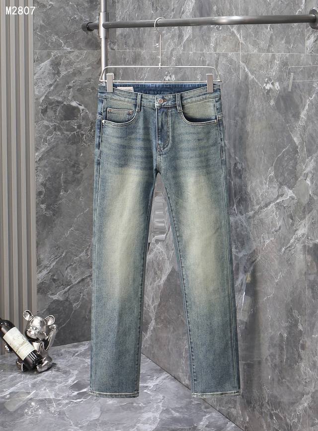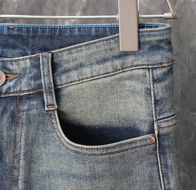 Fabric: denim washed jeans! Luxury experience. Customer-supplied trade channels, simple and charming classic trousers use customer-supplied denim jeans with thick texture, comfort and good breathability. The high-quality craftsmanship of the tailoring is first-class, the overall design is very delicate, and the internal and external cuffs are designed to fit tightly. The use of poly-strand mechanical needle edge sealing technology highlights the brand's luxurious inner charm. The brand Logo is full and thick, and the chiseled buttons are thick and rigorous, bringing a new fashion taste to this mediocre trousers!