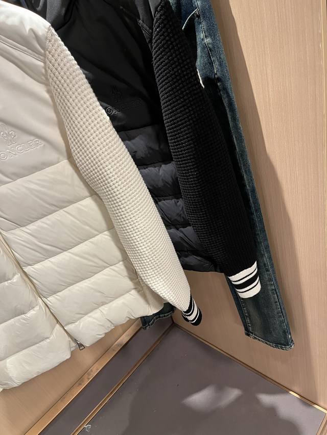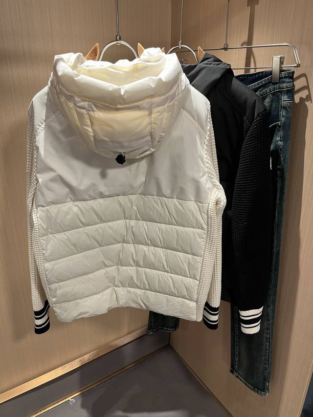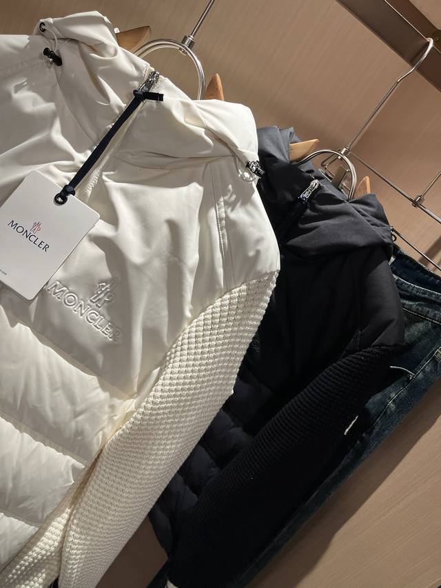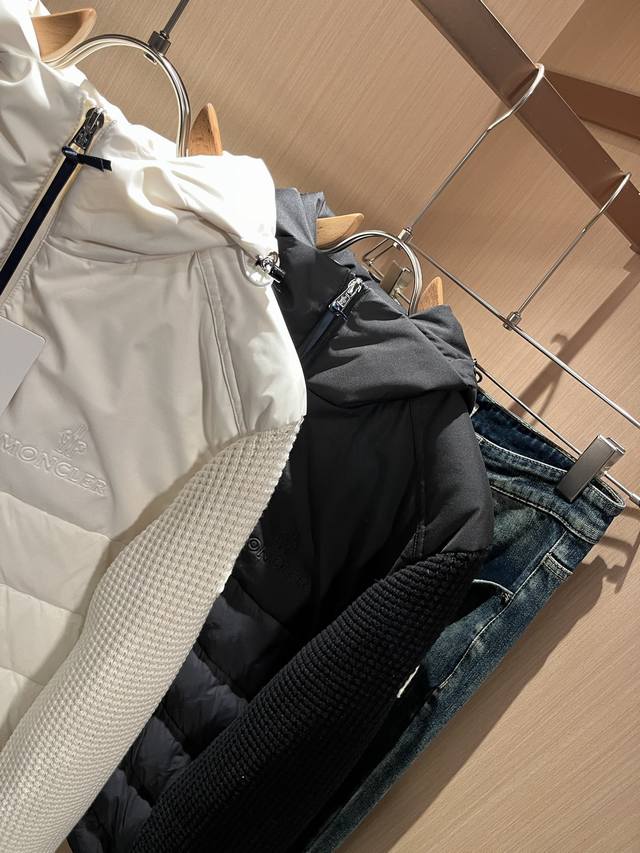Monc*Ler 2025 Autumn/Winter Classic Down Knit Patchwork Jacket, Urban Fashion Casual Style! Super soft fabric, a cool and trendy jacket. A versatile urban style, quick-drying, dries quickly after washing, breathable and stylish, with a subtle sheen, unique texture, and a soft, smooth feel. Excellent details that surpass ordinary fabrics. Features a classic hooded design, classic Monc*Ler embroidered patches on the sleeves, a very attractive design. The hem and cuffs have elasticated inner seams and custom original logo hardware. Lined with 90% white duck down! Attention to detail. Provides outdoor users with a full experience and comprehensive protection, allowing us to get closer to the challenges of nature! Minimalist seasonal design elements, a must-have item for trendy men, perfectly slim fit, highly recommended! Sizes: 1-5