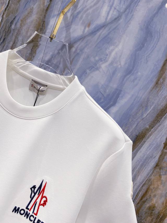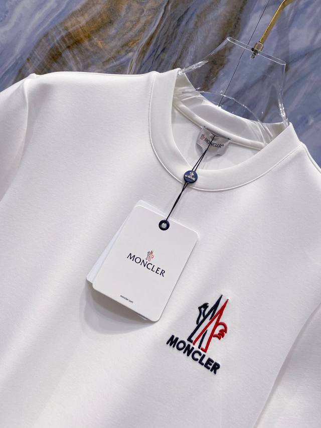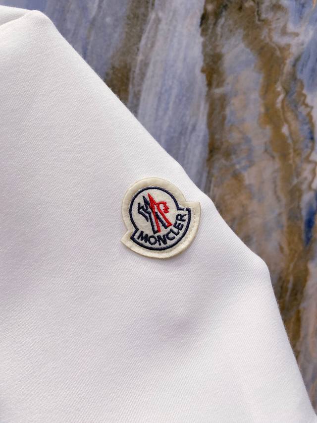 Mon#Cler 2025 Autumn/Winter Space Cotton Embroidered Logo Stylish and Versatile Crew Neck Short-Sleeve Shirt. Exquisite craftsmanship and fabric, combining top-tier elements. Classic short-sleeve design with all three brand labels included. Trendy men's style. Unparalleled comfort! Sizes S-XL