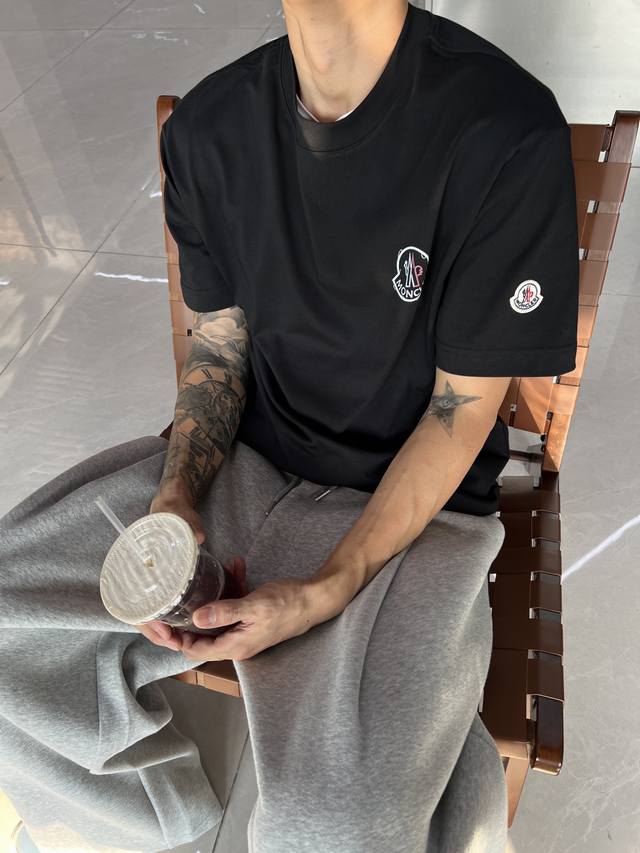 Moncler 2025 Pure Cotton Short-Sleeve T-Shirt, a stylish and casual classic. Made from select pure cotton fabric, it's soft, skin-friendly, breathable, and comfortable, like a gentle breeze caressing your skin. The loose fit is comfortable and casual, flattering for all body types, allowing for unrestricted movement. The unique print design is simple yet trendy, showcasing your distinctive taste. The classic crew neck is sleek and versatile, easily adapting to various styles. Whether paired with casual pants for a relaxed street style or jeans for a more energetic look, it's easy to wear. Colors: Black, White. Sizes: S-2XL.