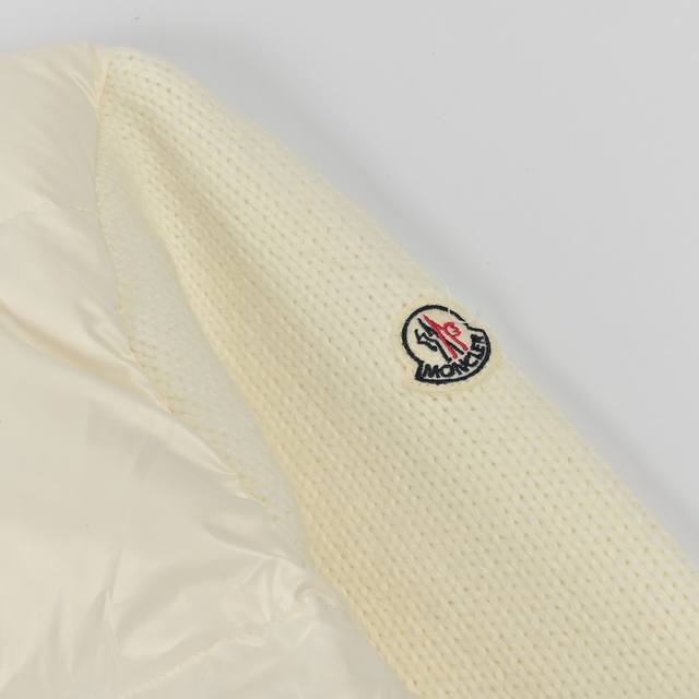 Moncler 23Fw Autumn/Winter New Down-Filled Patchwork Jacket. Features a classic stand-up collar, large side pockets, and an embroidered logo on the back. The down filling adds practicality while incorporating trendy patchwork elements. The short, solid color design exudes sophistication. Size: 1-4.