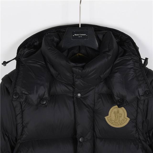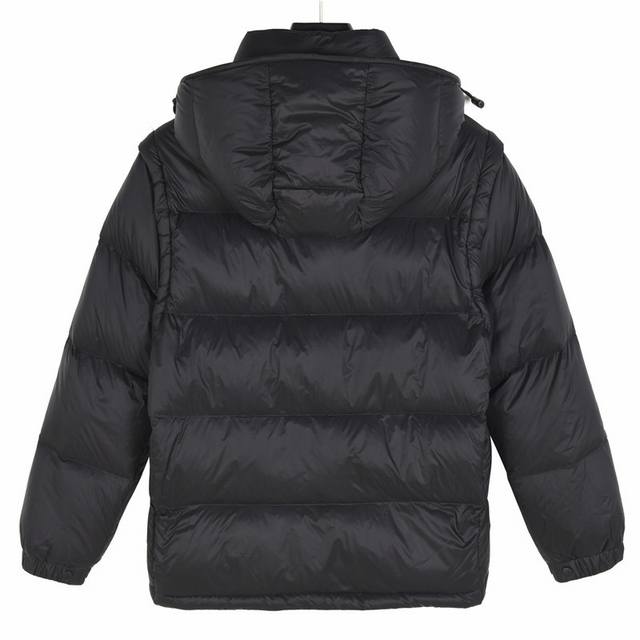 Premium Version), distinguishing it from ordinary versions on the market. This down jacket is made from the iconic 25D480T nylon fabric, featuring windproof and rainproof construction. The detachable sleeves allow for easy adjustment, allowing for a more streamlined look depending on the weather. Custom-made nylon coated fabric provides consistent gloss and color. The lining has two layers of anti-down leakage treatment to prevent down leakage. The felt embroidered label uses an imported Barudan embroidery machine for clear, delicate, and three-dimensional embroidery. It offers superior warmth and is equipped with custom-made heavy-duty hardware with laser cutting for enhanced insulation. It uses 90% down and features a wash label with NFC for easier care. The entire garment, from its design and thickness to its accessories, prioritizes lightweight construction, keeping you warm in city streets or during outdoor adventures.
