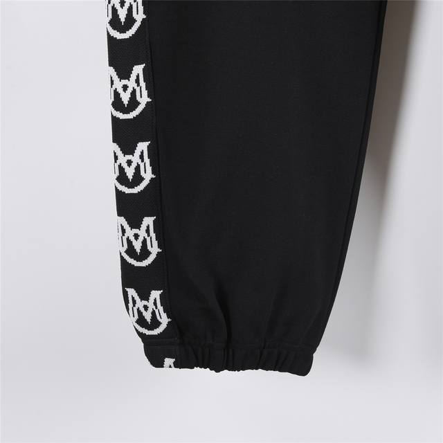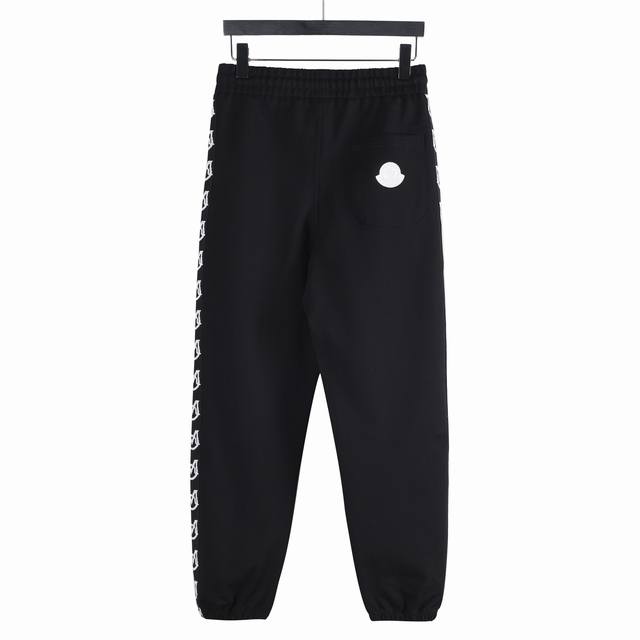New style patchwork combination with Moncler's exclusive logo embroidery on the side webbing, sporty elasticated cuff sweatpants,