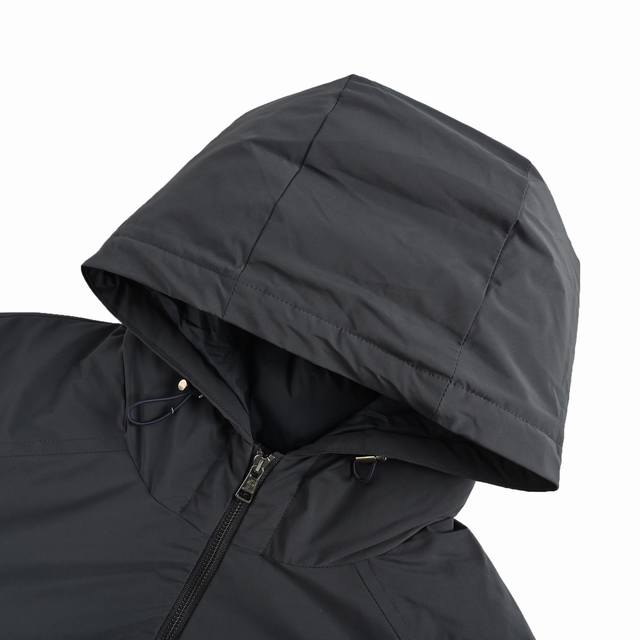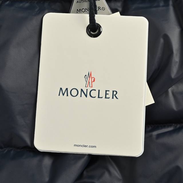 Moncler 25Fw Pocket Logo Hooded Down Jacket. This Moncler hooded down jacket is made of 100% polyester fabric treated with microfiber, resulting in ultra-fine, smooth fibers reminiscent of natural materials. High-density weaving gives the fabric wrinkle resistance, windproofing, warmth, and durability. The lining uses 0.08mm ultra-fine denier high-density fabric, which is lightweight, smooth, and retains warmth and prevents deformation. It is filled with 200g of 90% white duck down, providing excellent warmth and being specially treated to prevent down leakage. Details include a pebbled leather flap pocket on the chest with a matte metal buckle and a concealed adjustment drawstring for added sophistication; a black satin inner patch pocket with a distinctive "identity card"; silver snap buttons and red, white, and blue webbing for a high-end feel; and custom-made buttons, a drawstring hem, eyelets, and zipper pendants, all showcasing the quality from every angle. Size: 1-4