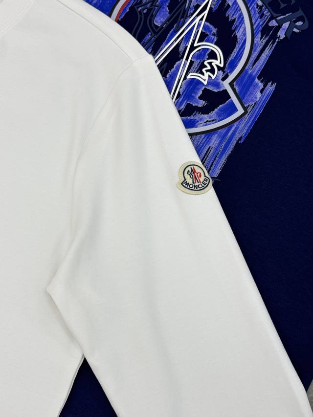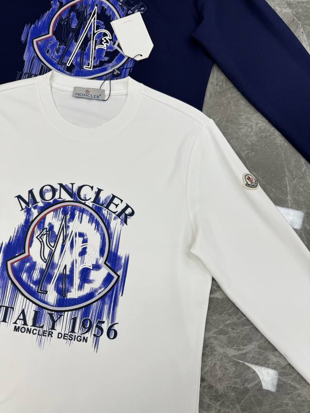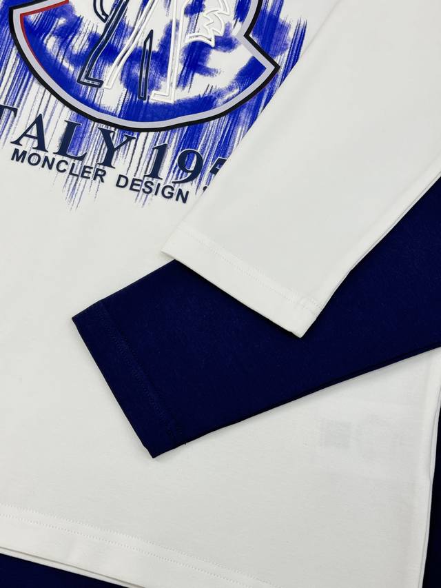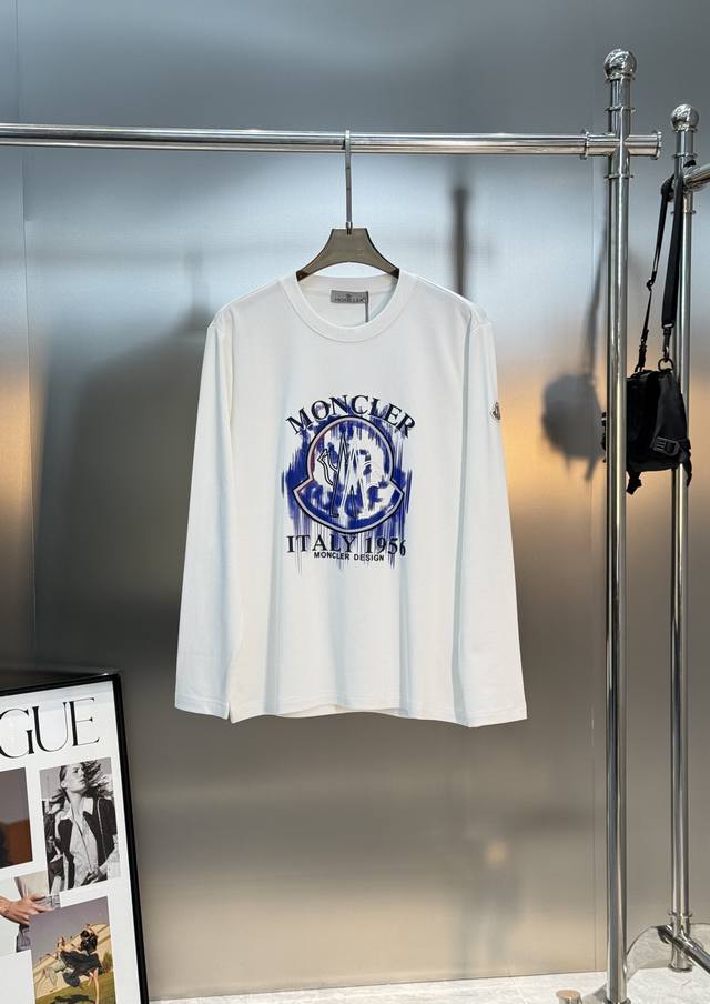 Moncler 25S New Modal Long-Sleeve T-Shirt. This new Moncler graffiti print T-shirt features the brand's classic logo and "Italy 1956" on the front, exuding a strong street style. It pairs perfectly with casual pants or sneakers for an effortlessly trendy look. Featuring Moncler's high-end outdoor style, this fashionable and practical T-shirt is a favorite among young people. Made from high-quality 300g soft modal cotton, it's comfortable and breathable. Highly recognizable. Available in black, dark blue, and white, this versatile T-shirt is suitable for all body types and perfect for everyday wear or casual occasions in spring and summer. Combining style and practicality, it looks great with jeans or sweatpants! Sizes: M-3XL (slim fit), S and 4XL (custom sizes available). L is recommended for someone 175cm tall and weighing 140kg.