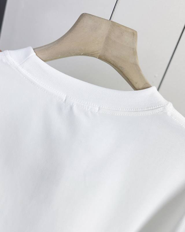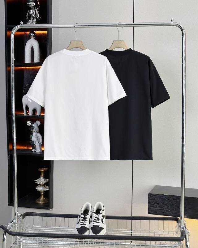 . Made of pure cotton 280G double yarn fabric, it feels delicate and soft, skin-friendly and breathable, with classic simple contrasting color splicing letter logo on the chest and sleeve arm badge embroidered logo design, novel and unique, no collision with clothes, classic and versatile with a full sense of fashion, imported machine printing, clear and sense of band, the whole piece is made of three-needle and five-thread technology, neckline-shoulder seam-sleeve seam-pressed double line, Oversize version, exquisite and perfect workmanship, a must-have versatile luxury item in summer