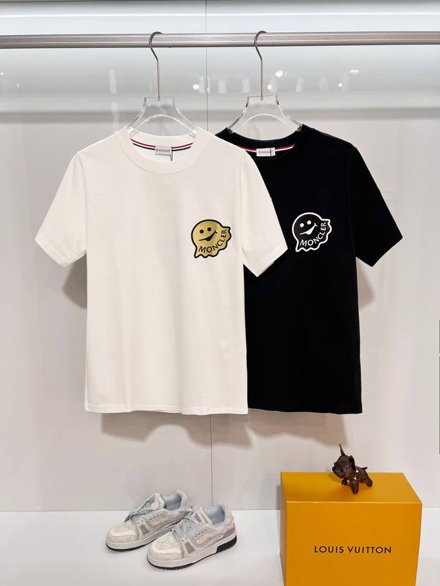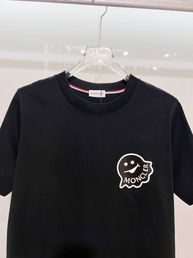 Moncler 300g 100% Cotton Crew Neck Short Sleeve T-Shirt. Features classic 3D monster logo embossing. 2025 SS official high-quality version. Stylish, versatile, and trendy. Original quality fabric. Includes hangtag, neck label, and wash label. Colors: Black, White. Sizes: S, M, L, XL, XXL.