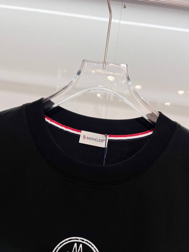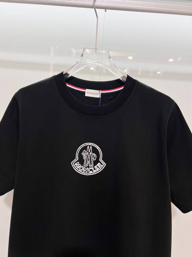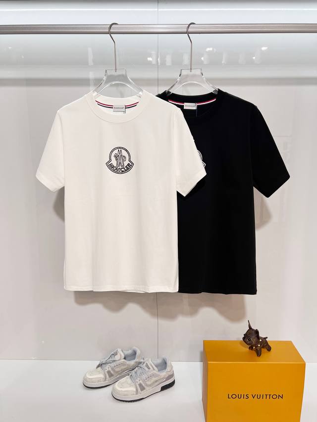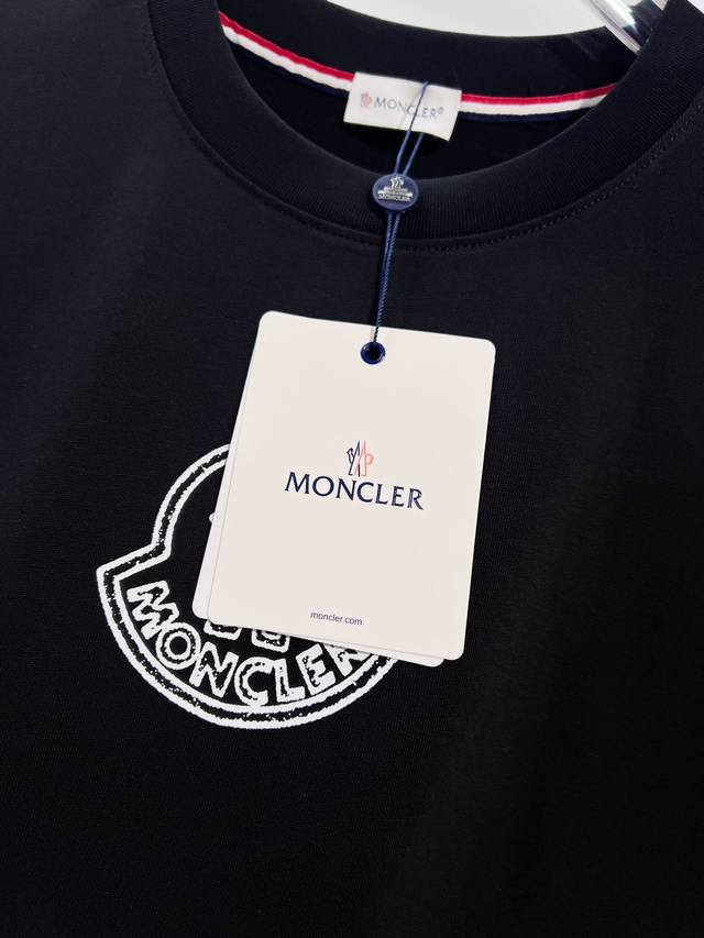 Moncler 300g 100% Cotton Crew Neck Short Sleeve T-Shirt. Features classic color-blocked double-sided logo embossing. 2025 SS official high-quality version. Stylish, versatile, and trendy. Made with original fabric and tags. Colors: Black, White. Sizes: S, M, L, XL, XXL.