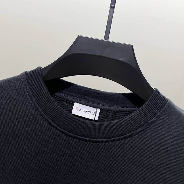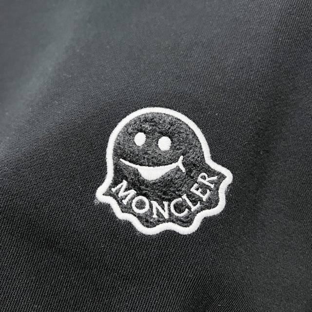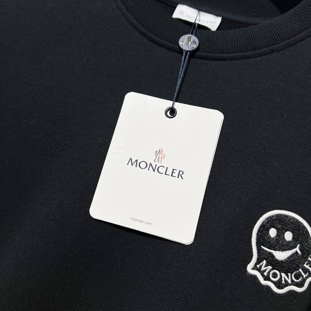 Moncler 420g 100% Cotton Crew Neck Sweatshirt. Features a small monster logo, flocked embroidery, and a brand badge. High-quality, officially synchronized version. Stylish, versatile, and trendy. Made with original fabric and tags. Includes hangtag, neck label, and wash label. Colors: Black, White. Sizes: XS-L.