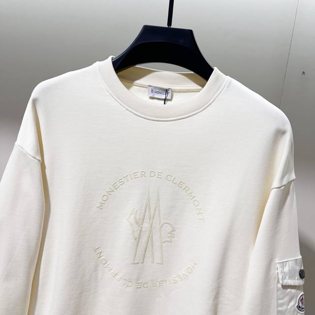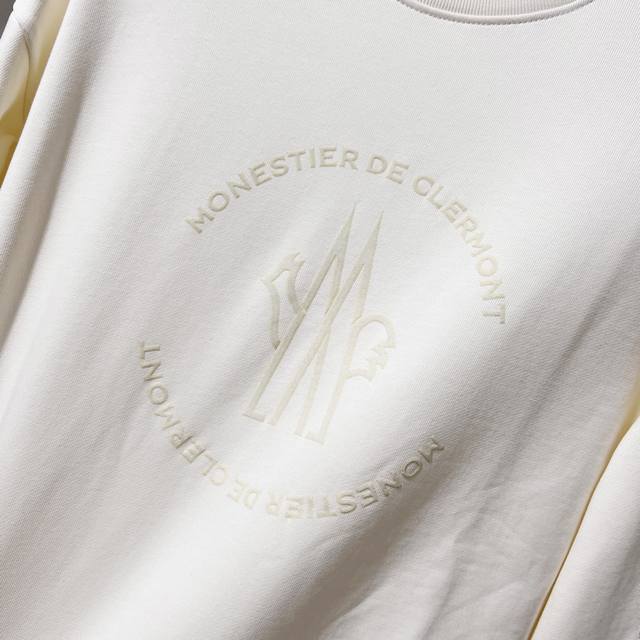 Moncler 420g 100% Cotton Crew Neck Sweatshirt. Features flocked print letter logo, nylon patch on the sleeve, and pocket label. Officially synchronized high-quality version. Stylish, versatile, and trendy. Original quality fabric. Includes hangtag, neck label, and wash label. Colors: Black, Apricot, Light Green. Sizes: XS-L.