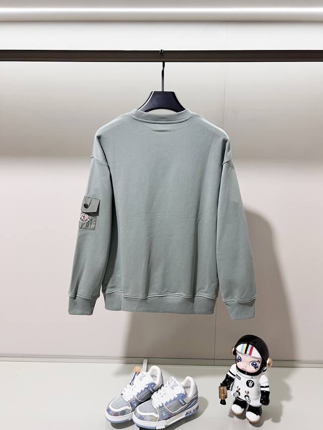 Moncler 420g 100% Cotton Crew Neck Sweatshirt, Flocked Print Letter Logo, Nylon Patch on Arm, Pocket Label, Official High-Quality Version, Stylish, Versatile, Trendy, Original Quality Fabric, Complete with Hangtag, Neck Label, Washing Label, and Three Tags. Colors: Black, Apricot, Light Green. Sizes: XS-L.