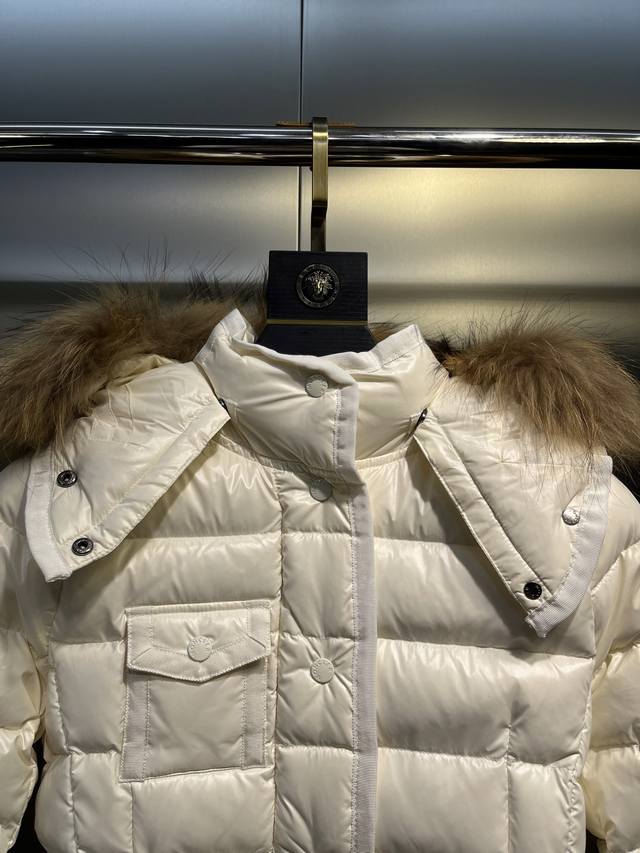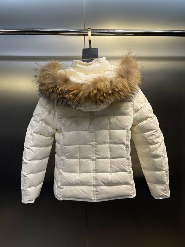 Short Slim Fit Women's Down Jacket, Extra Large Fox Fur, Imported Nylon Fabric, Zipper Closure