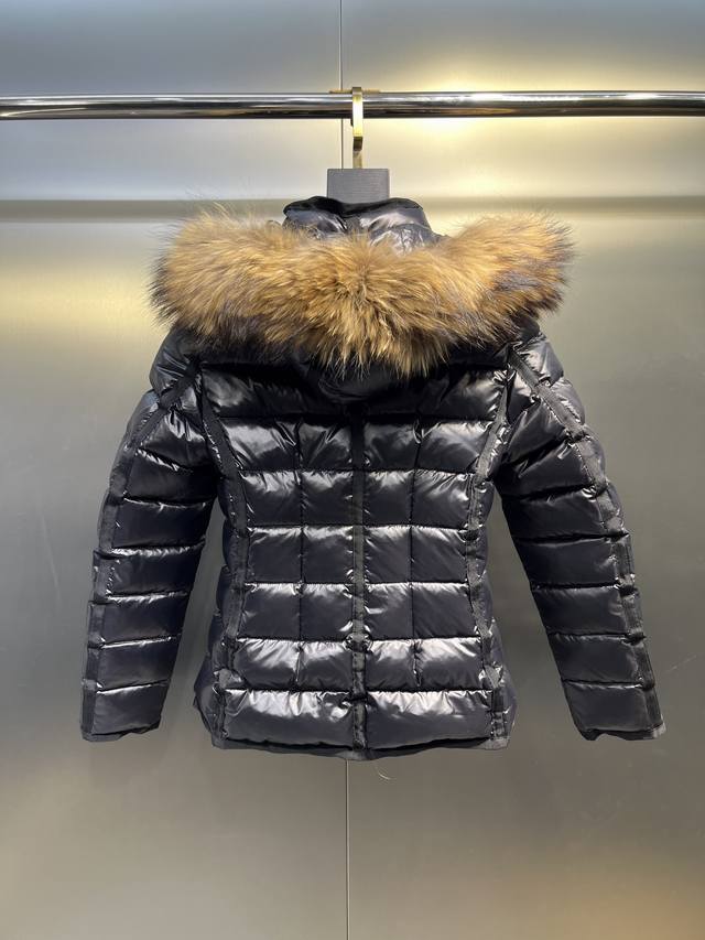 Short Slim Fit Women's Down Jacket, Extra Large Fox Fur, Imported Nylon Fabric, Zipper Closure