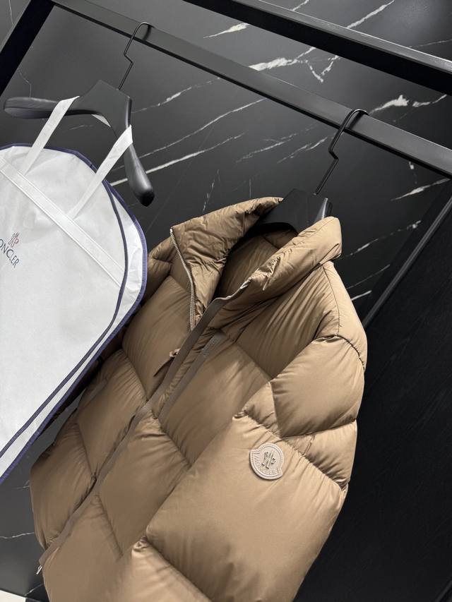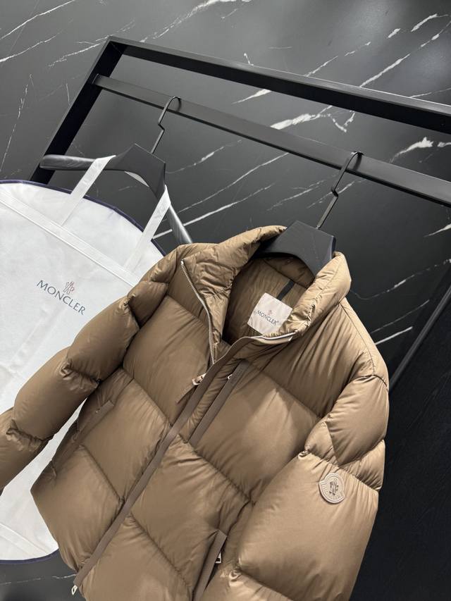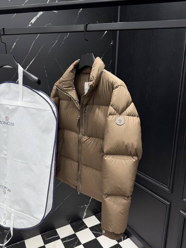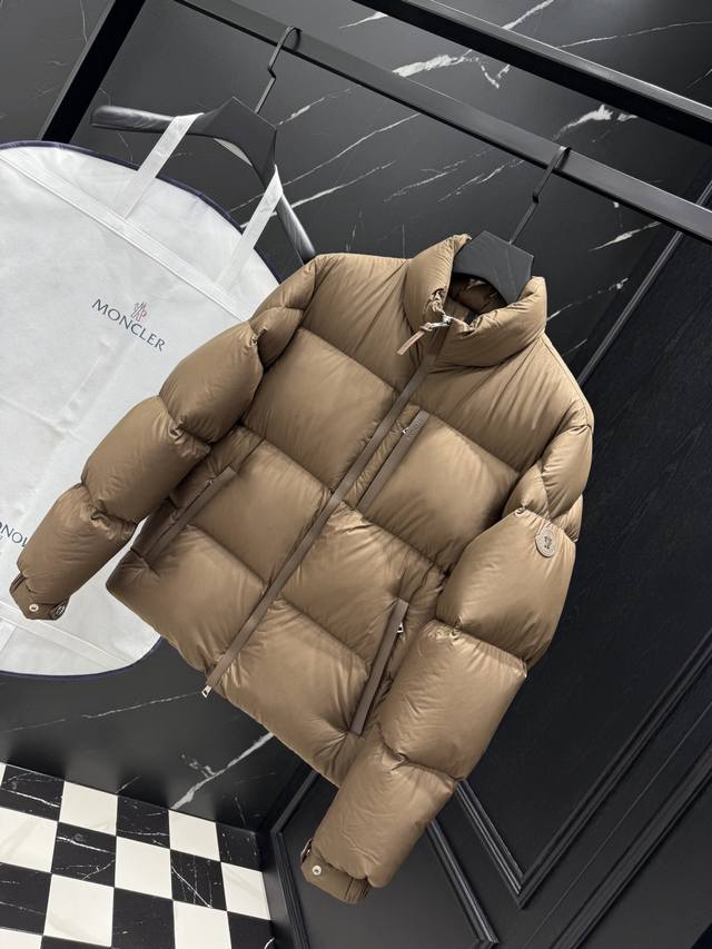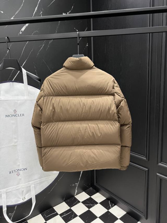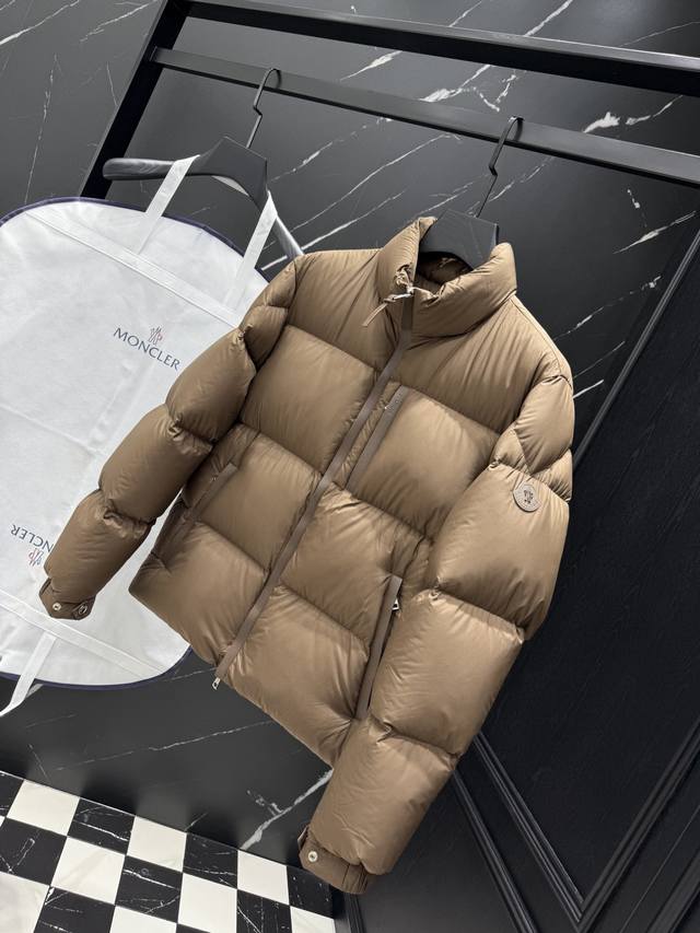 Moncler Besbre Men's Short Business Loose Lightweight Down Jacket for Autumn/Winter. Genuine leather and down filling, top-of-the-line version made with Longue Saison fabric and Longue Saison lining with down filling. Stand collar with genuine leather. Zipper closure and zippered pockets. Size: 1-5