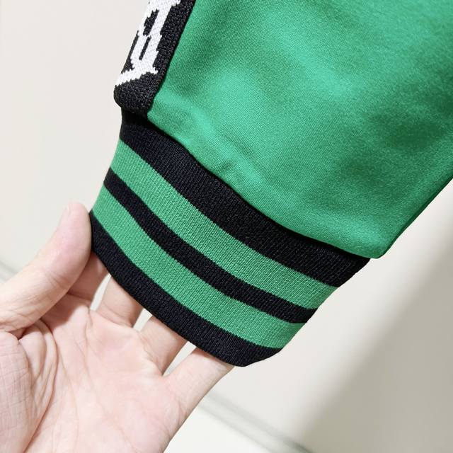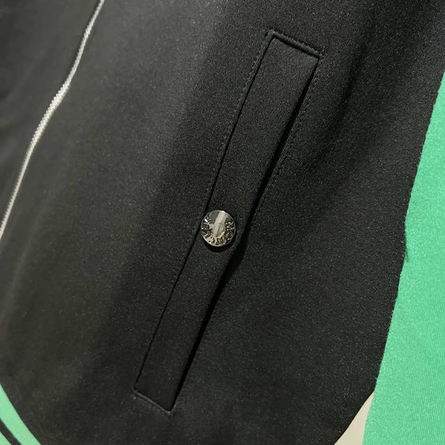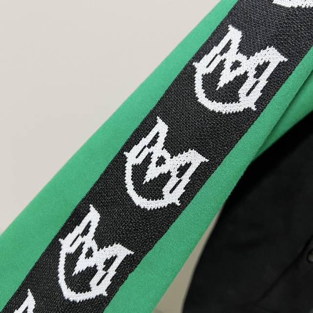 ) Color-blocked design with embroidered logo, hand and sleeve webbing details (