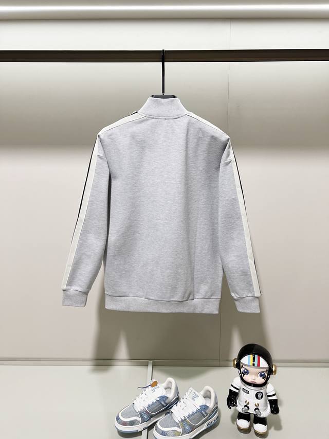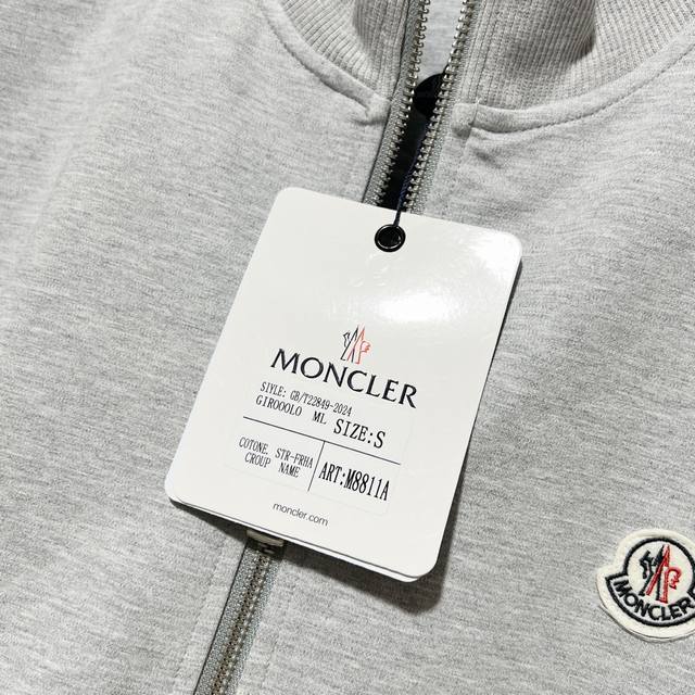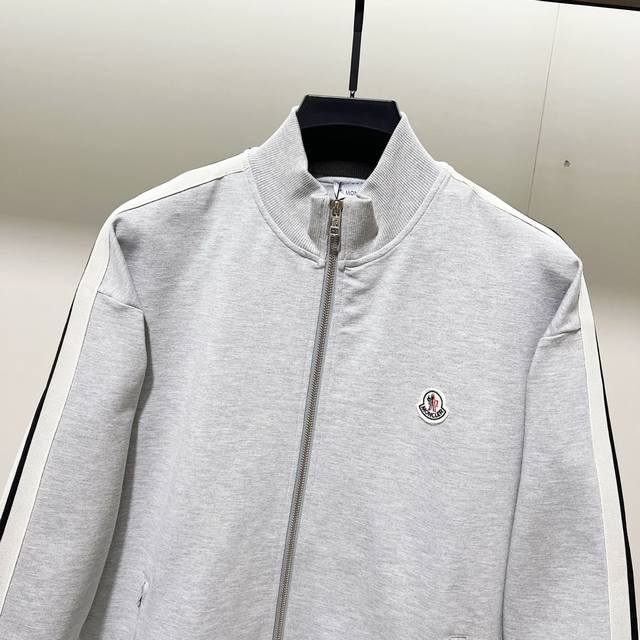 Moncler Custom Fabric Zipper Jacket Suit. Features include simple side webbing detailing, brand logo, official high-quality replica, fashionable and versatile, original quality fabric, and complete with tags, neck label, and wash label. Colors: Black, Blue, Gray. Sizes: S-2XL.