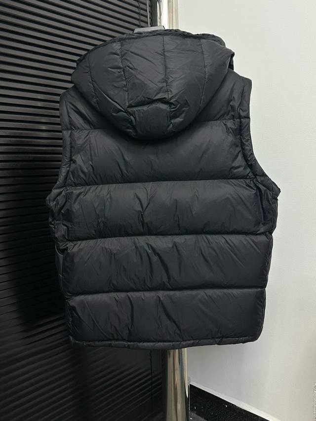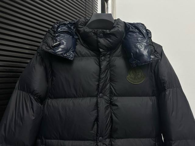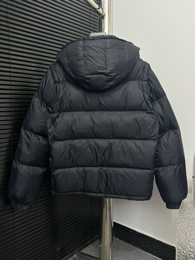 Moncler Cyclone 2-in-1 Detachable Down Jacket. Features a stand-up collar, hood, and detachable sleeves, allowing for multiple styling options to suit various looks. Made with custom-made windproof and rainproof fabric, it's wrinkle-resistant, anti-static, quick-drying, soft, and skin-friendly, offering exceptional comfort. The stand-up collar and hood design makes this down jacket suitable for both business and casual occasions. Manufactured by the original factory (P), with electroplated hardware, all original factory customization, not various market versions. The workmanship, quality, and details are impeccable. Color: Black. Sizes: 1, 2, 3, 4, 5.
