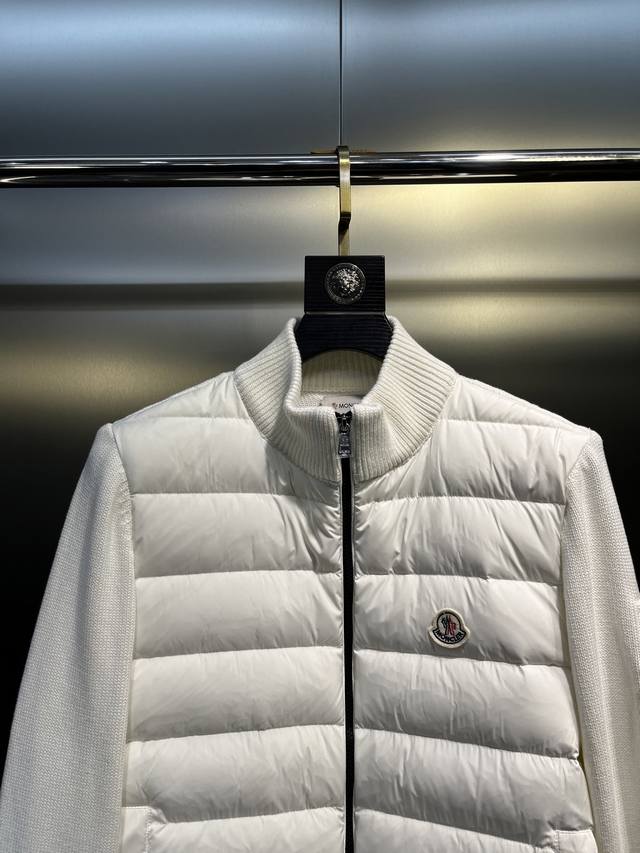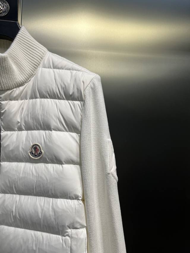 Moncler Ss23 Solid Color Logo Patchwork Quilted Down Jacket, Colors: Black, White, Size: 12345