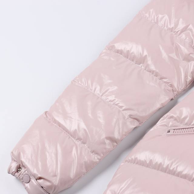 Moncler Early Autumn New Arrival Barante Women's Short Hooded Down Jacket with Slim Waist. This super slimming down jacket features a nylon oil-waxed leather micro-wrinkle finish, giving it a high-end look while remaining stylish and easy to care for. The hardware details are also newly designed. The same color design is simple and elegant, slimming, youthful, fashionable, not bulky, and warm. Colors: Cherry Blossom Pink, Cream White, Cool Black. Sizes: 0, 1, 2, 3.