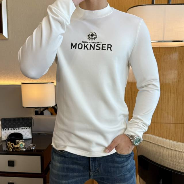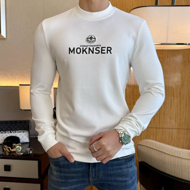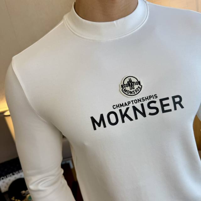 Moncler Early Autumn New Arrival Men's Long-Sleeved Fleece Undershirt. Made with custom-made high-grade cotton fabric and featuring a stylish designer logo design, this soft, delicate, comfortable, and warm undershirt is crafted using multiple processes. A must-have basic undershirt for every man's wardrobe, it can be paired with various outfits anytime, anywhere to meet your daily needs. The design is simple yet sophisticated. Grab yours now! Standard fit, sizes: M~3XL