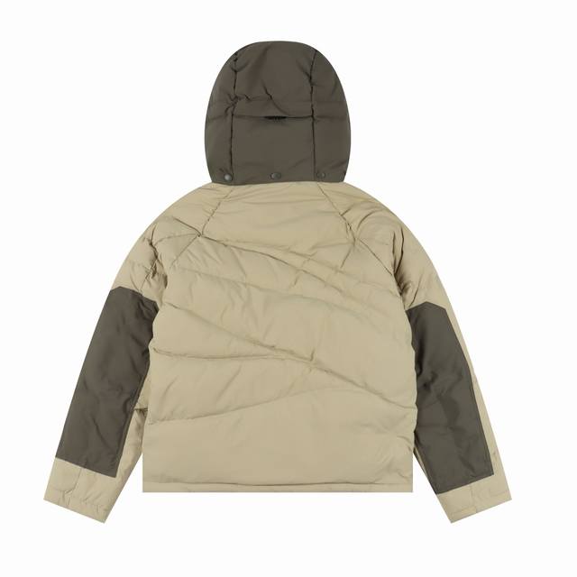 Moncler Genius x Pharrell Williams Collaboration Fw23 Waterproof Nylon Stitched Hooded Short Down Jacket, 90% White Duck Down, Green Design. Inspired by a futuristic landscape, the Williams x Moncler collaboration focuses on a surreal outdoor style, creating a wonderland inspired by stylish camping. The entire collection blends Pharrell Williams' design style, interpreting the art of the earth. Sizes 1 2 3 4 5