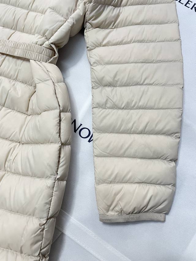 Moncler has launched its latest women's Oredonne mid-length slim-fit belted goose down jacket.
