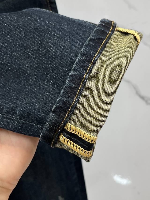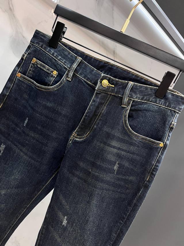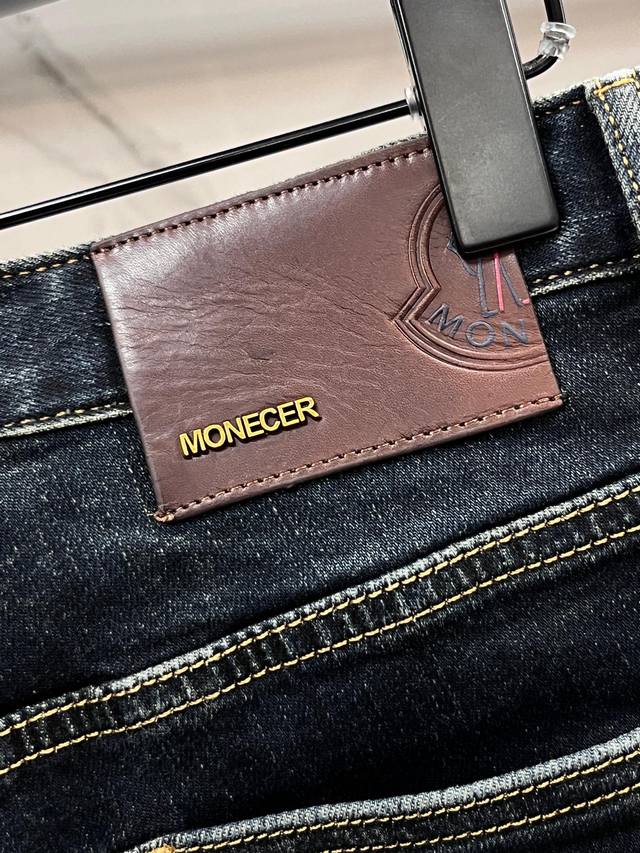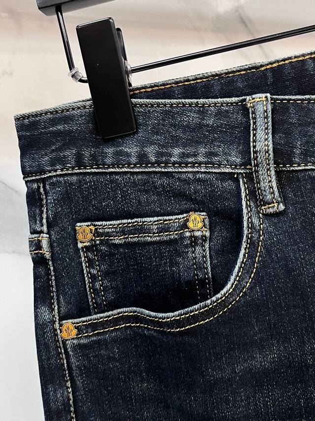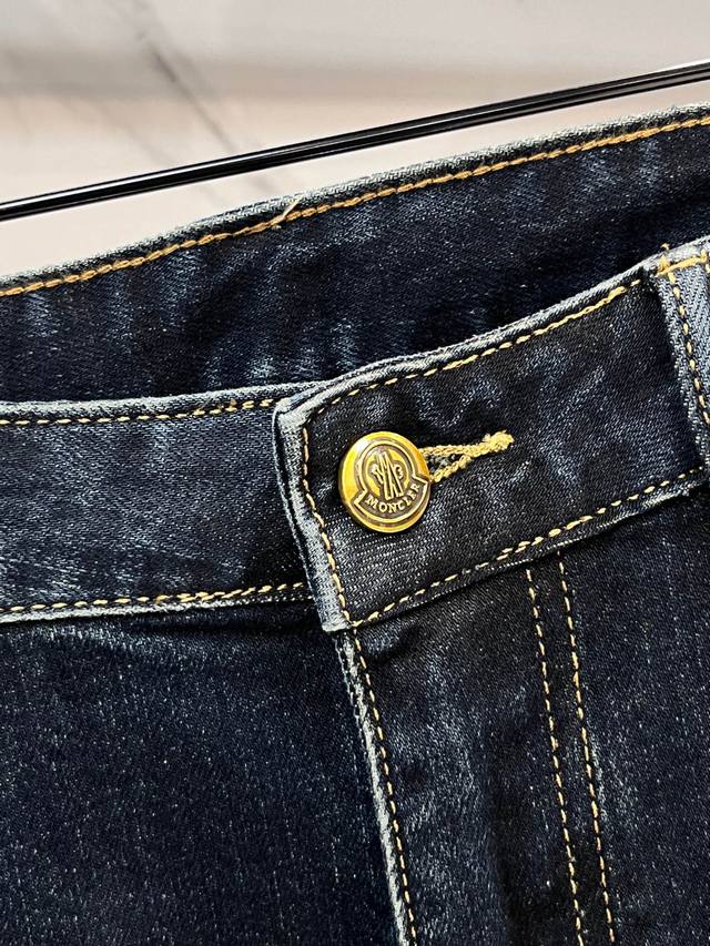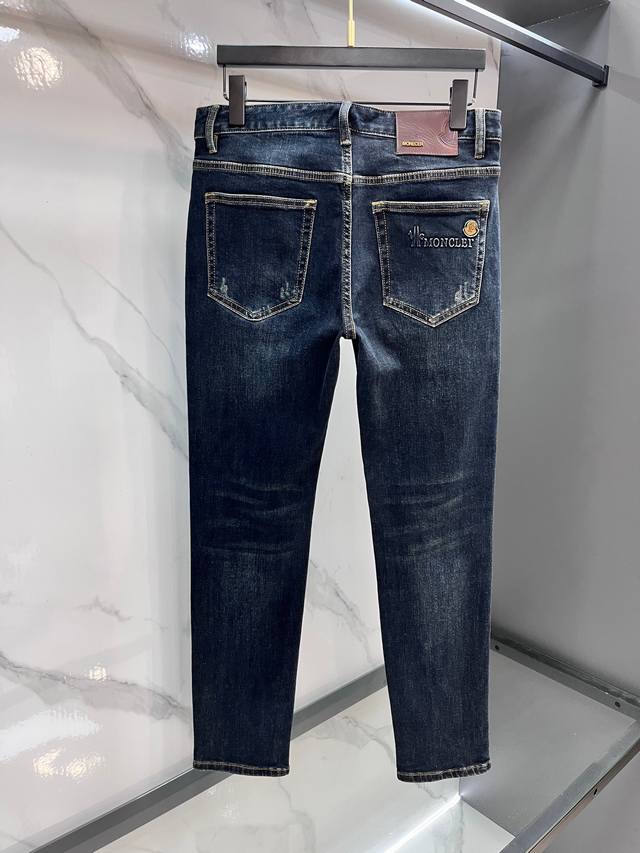 Moncler high-end custom-made jeans, 2025 early autumn latest style, available in stores. Original custom-made, customer-supplied hardware and accessories , original quality imported color-fixed denim stretch fabric, heavy washing, exquisite workmanship and stitching, excellent fit! Selected items with all three labels. Size: 29-38