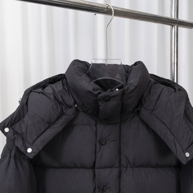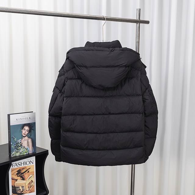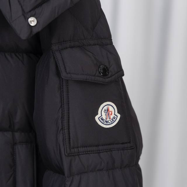 ) This Vezere short down jacket is a basic warm piece that showcases Moncler's signature style. Made from Longue Saison fabric, the Vezere down jacket is both lightweight and warm. This short down jacket features a hood that can be easily removed depending on the weather. The jacket silhouette and sleeve patch pockets pay homage to the iconic Moner Maya down jacket. (