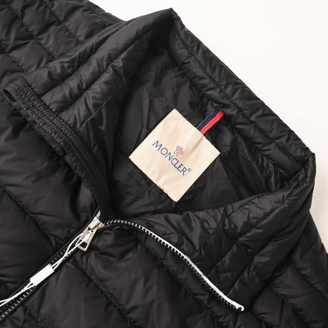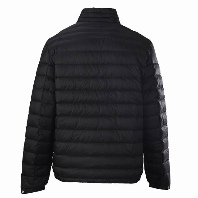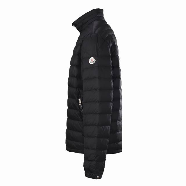 Moncler Mc 25Fw Rib Collar Down Jacket. This Moncler Arnique lightweight down jacket features horizontal quilting, a low down filling, and a slim, lightweight design, earning it the nickname "ribbed down jacket." The stand-up collar and hoodless design create a clean, streamlined silhouette, suitable for urban commuting or everyday wear. The fabric is water-repellent nylon with a smooth nylon lining, combining style and functionality. Size: 1-5
