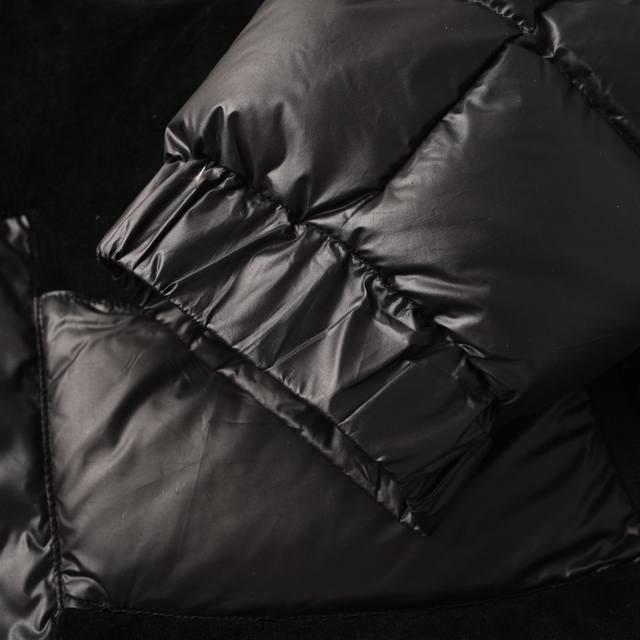 Customized ink-style premium carbon black coated windbreaker fabric, customized Korean-style flowing velvet knit fabric, using 400D calendered lining cloth, national standard 95 white duck down, welcome to test, rich down, warm, light and fluffy, computer laser burnishing pattern cutting, using high-energy laser beams to instantly melt the fabric fibers at high temperature, according to the original pattern, precise cutting and engraving on the fabric, smooth edges, to achieve seamless splicing, It effectively prevents cold air from penetrating and improves the warmth of down jackets. The computerized mechanical filling prioritizes making a liner paper pattern to determine the filling area. The weight of down per square meter is determined according to the original three-dimensional effect, thereby calculating the filling quantity for each piece. The computerized filling machine uses a digital weighing unit for stable measurement. The computerized template machine's line processing exhibits extremely high neatness and smoothness. The craftsman's precise control of dimensions during operation ensures that each line meets the design requirements. The lines of the entire template are smooth, uniform, neat and beautiful. #DetachableAdjustableHoo