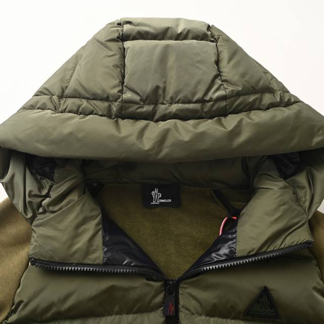 Moncler Mc Triangle Logo Woven Hooded Down Jacket Ddd Custom-made matte lattice down with a 300D high-density calendered coating, using the new national standard 90% white duck down (welcome to test). It boasts ample down filling, exceptional warmth, and a lightweight, fluffy feel. Computerized mechanical filling prioritizes the creation of inner lining patterns to determine the down weight per square meter based on the original 3D effect, thus calculating the down filling amount for each piece. The computerized filling machine uses a digital weighing unit for stable measurement. 3D quilting technology, utilizing the programming system of the CNC quilting machine, precisely separates down in different areas, ensuring even and fixed filling after sewing, preventing clumping or displacement. Computerized template machine stitching exhibits extremely high neatness and smoothness. The technician's precise control of dimensions during operation ensures that every line meets design requirements, resulting in smooth, uniform, neat , and aesthetically pleasing lines. Triple overlock and five-thread close-stitching technology, through main seam overlock, diagonal reinforcement, and raw edge wrapping, forms a three-dimensional protective net around the fabric edge, preventing stitch breakage. Size: S-XL DDD
