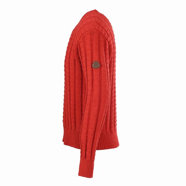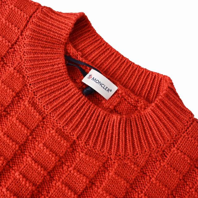 Moncler Mc Two-tone Embossed Knit Crew Neck Sweater (Ddd) Made of custom-knitted embossed wool textured fabric, featuring an all-over embossed longitudinal weave. Through specific needlework and fabric structure variations, by altering the needle arrangement and fabric density, the longitudinal weave creates a raised, embossed effect on the sweater's surface, resulting in undulating variations. The curved rib structure, achieved by changing the needlework and yarn arrangement during the knitting process, creates a curved distribution of yarn within the fabric. The garment undergoes a washing and softening deodorizing process for deep cleaning and deodorization, improving the feel and appearance of the garment. Loose fit (Ddd) Size: S-XL (DDD)