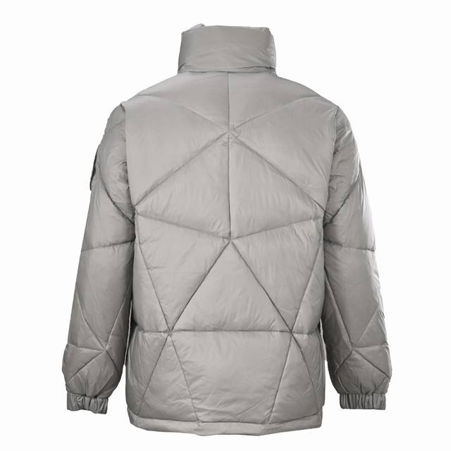 Moncler Mc x Pharrell Williams Collaboration Triangular Cut Stand Collar Down Jacket DDD Unisex Couple Style Goose Down Jacket DDD Made of soft, functional nylon fabric with a down lining and 90% white goose down filling, it's fluffy, soft, lightweight, and comfortable, providing optimal warmth. Unique triangular stitching adds visual appeal. Stand collar with snap and zip closure, metal logo decoration on the placket, and adhesive logo embellishments on the sleeves. The logo is detachable and can be placed in the pocket. The relaxed silhouette and elastic drawstring hem allow for easy layering over thick knitwear and sweatshirts in cold weather. DDD Item No. 1123760003 DDD Colors: Gray, Black DDD Sizes : 1 2 3 4 5 DDD